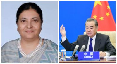 काठमाण्डौ । तीन दिने नेपाल भ्रमणमा रहेका चिनियाँ विदेशमन्त्री वाङ यीले आज राष्ट्रपति विद्यादेवी भण्डारीसँग
