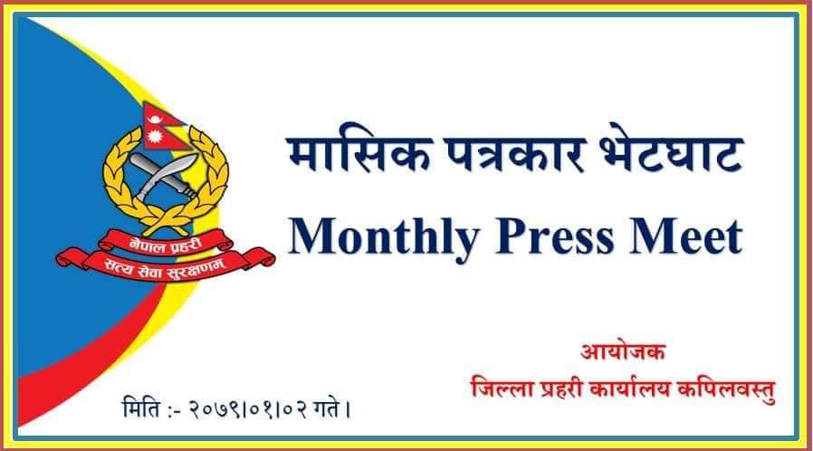 जिल्ला प्रहरी कार्यालय कपिलवस्तुले चैत महिना भरी भएका अपराध अनुसन्धानका घटनाहरुको विवरण सार्वजनिक गरेको छ। जिल्ला प्रहरी कार्यालय तौलिहवामा शुक्रवार पत्रकार सम्मेलन गरी सावैजनिक गरिएको हो। चैत महिनामा ६० जना फरार प्रतिवादी पक्राउ परेको जिल्ला प्रहरी कार्यालय कपिलवस्तुका प्रमुख प्रहरी उपरीक्षक दान बहादुर कार्कीले बताउनु भएको छ।