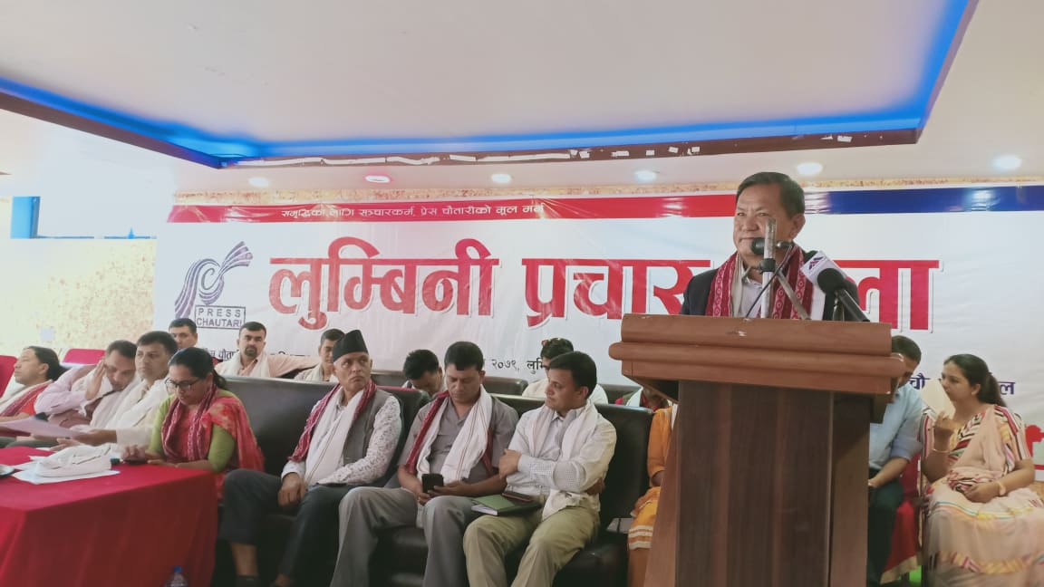 नेकपा एमाले लुम्बिनी प्रदेश प्रचार विभाग र प्रेस चौतारी नेपाल लुम्बिनी प्रदेशद्धारा सोमबार वाणगंगामा आयोजित लुम्बिनी प्रचार भेलाको उद्घाटन गर्दै उहाले यस्तो बताउनुभएको हो । उहाले ओली नेतृत्व सरकारको पालामा भएको विकास निर्माणका कार्यहरुको प्रेस चौतारीले व्यापक प्रचार प्रसार गर्न निर्देशन दिनुभएको छ । संगठन इन्र्चाज समेत रहनुभएका गुरुङले अहिले सम्म हुनै नसकेको विकास केपी ओली नेतृत्वको सरकारको पालामा भएको बताउदै यस्तो निर्देशन दिनुभएको हो । साथै उहाले राष्ट्रियताको सुरक्षा केवल एमालेले मात्र गर्न सक्ने बताउदै लिपुलेक, लिम्पियाधुरा र कालापानी सहितको नेपालको नक्सा परिर्माजन तथा भारतले लगाएको अघोषित नाकाबन्दीको प्रतिरोध ओली सरकारले गरेको औल्याउनुभयो ।