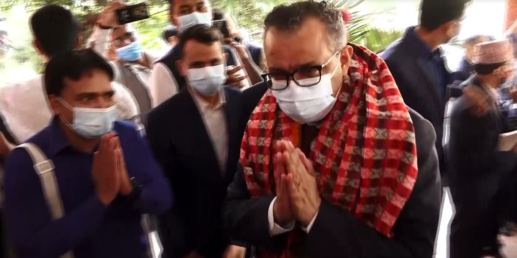 मन्त्री खतिवडाको निमन्त्रणामा नेपाल भ्रमणका लागि आज बिहीवार दिउँसो काठमाण्डौ आइपुग्नुभएका डा। गेब्रेयससले स्वास्थ्य मन्त्रालयमै पुगेर मन्त्री खतिवडालाई भेट्नुभएको हो । भेटमा मन्त्री खतिवडाले दोस्रो कार्यकालका लागि महानिर्देशक डा। ग्रेबेयससलाई नेपालले समर्थन गर्ने प्रतिबद्धता व्यक्त गर्नुभएको छ ।