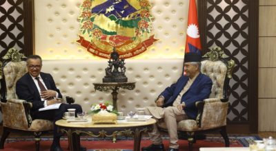 काठमाण्डौ । प्रधानमन्त्री शेरबहादुर देउवासँग विश्व स्वास्थ्य सङ्गठन डब्ल्यूएचओ का महानिर्देशक डा टेड्रोस एड्हानोम गेहब्रेयससले