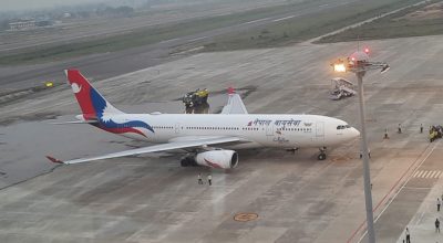 काठमाण्डौ । गौतमबुद्ध अन्तर्राष्ट्रिय विमानस्थल भैरहवामा नेपाल एअरलाइन्सले आज परीक्षण उडान गरेको छ।नेपाल एअरलाइन्सको वाइडबडी