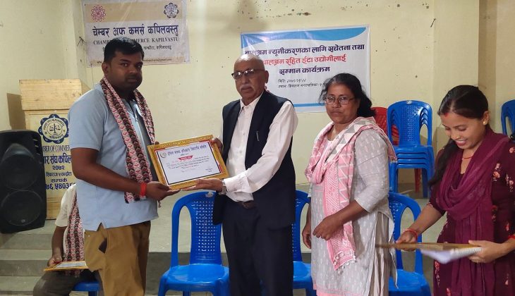 कपिलवस्तुमा बालश्रम रहित ४ वटा ईट्टा उद्योगलाई सम्मान
