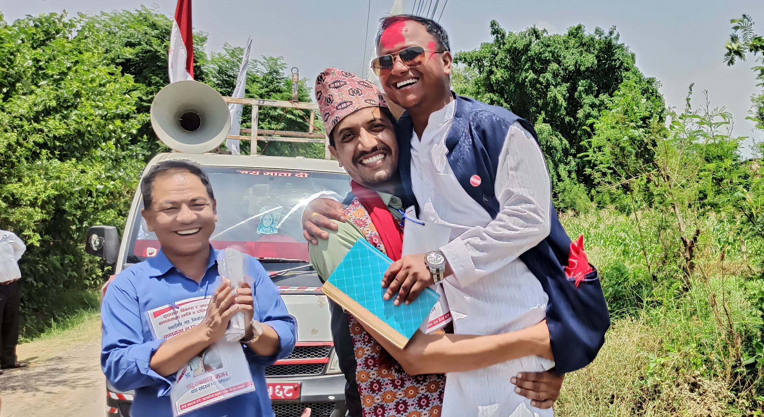 मायादेवी अनलाइन, चारनम्बर । बुधबार दिउसो २ बजेतिर कपिलवस्तुको बाणगंगा नगरपालिका वडा नम्बर ४ हरिहरपुरमा एउटा अनौठो दृश्य देखियो । वैशाख ३० गते हुन लागेको स्थानीय तहको निर्वाचनमा प्रचार प्रसारका क्रममा वडा नम्बर ४ मा वडा अध्यक्षका उम्मेदवार बनेका गठबन्धनका चन्द्रकान्त न्यौपाने र नेपाली काँग्रेसका दिनेश क्षेत्रीबीच जम्काभेट भयो ।