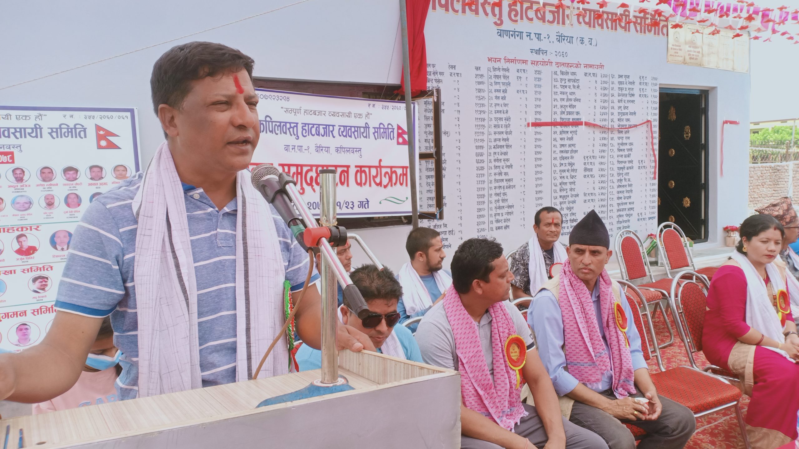 त्यस्तै कपिलवस्तु उद्योग वाणिज्य संघका अध्यक्ष डोलकराम घिमिरेले व्यवसायीहरुको हक हितका लागि उद्योग वाणिज्य लागिरहेको बताउनुभयो । कार्यक्रमका विशिष्ठ अतिथि समेत रहनुभएका घिमिरेले कपिलवस्तु हाट बजार व्यवसायी समितिमा आवद्ध सबै व्यवसायीहरु करको दायरामा संगठित रुपमा व्यवसाय सञ्चालन गर्न आवश्यक रहेको बताउनुभयो । व्यसायीहरुले तिरेको करबाट स्थानीय सरकारले हाटबजार सम्बन्धीका विकास निर्माणका कार्य गर्नुपर्नेमा जोड दिनुभयो ।