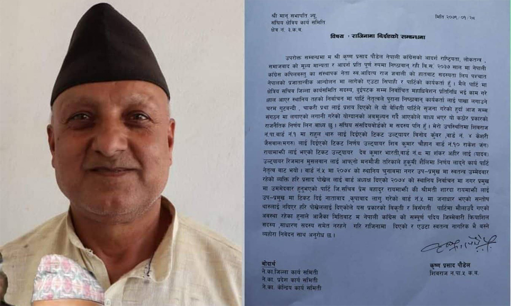 नेपाली कांग्रेस केन्द्रीय महाधिवेशन प्रतिनिधि तथा संसदीय बोर्ड टिकट वितरण समितिको सदस्यसमेत रहेका कृष्णप्रसाद पौडेलले पार्टीबाट राजीनामा दिएका छन् ।