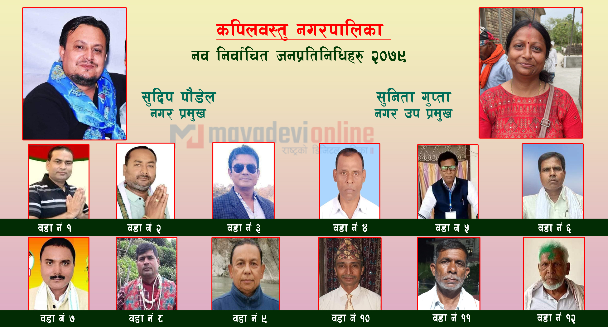 त्यस्तै नेकपा एमालेबाट वडा नं २ मा अशोक गुप्ता, वडा नं ४ मा रविन्द्र तिवारी, वडा नं ६ मा रामजित कुर्मी र वडा नं ९ मा दिपक गुरुङ निर्वाचित भएका छन् ।