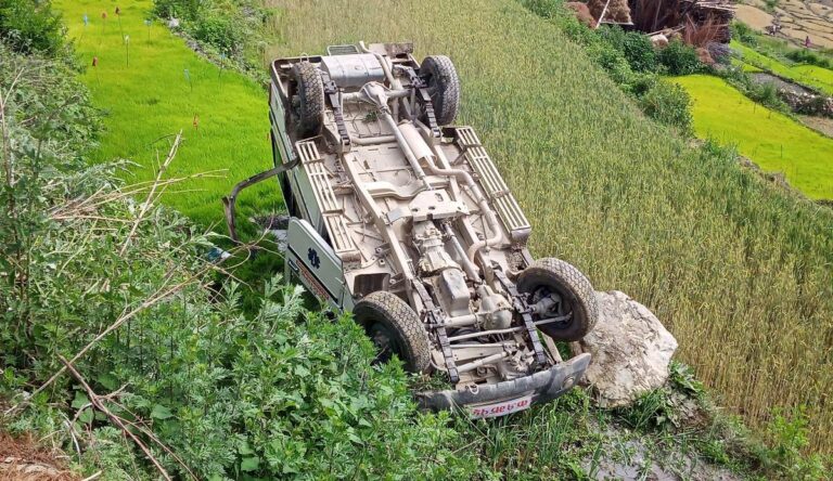 जुम्लामा एम्बुलेन्स दुर्घटना भएको छ । जिल्लाको कनकासुन्दरी गाउँपालिकाबाट बिरामी ल्याउदै गरेको एम्बुलेन्स दुर्घटना भएको हो। जिल्ला प्रहरी कार्यालय जुम्लाका अनुसार कनकासुन्दरी गाउँपालिका ६ स्थित दाँते ओखरमा क १ झ १५ नम्बरको कनकासुन्दरी गाउँपालिकाको एम्बुलेन्स आईतबार बिहान दुर्घटना भएको हो ।