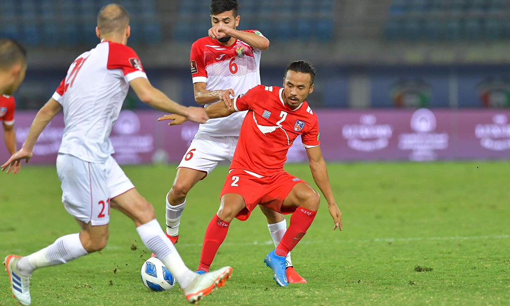 एएफसी एसियन कप छनोट २०२३ को तेस्रो चरणअन्तर्गत पहिलो खेलमा नेपाल बलियो टोली जोर्डनसँग २(० अन्तरले पराजित भएको छ । बुधबार राति कुवेत सिटीस्थित जाबिर अल अहमद स्टेडियममा पहिलो हाफमा जोर्डनलाई रोकेको नेपाल दोस्रो हाफमा भने त्यसलाई निरन्तरता दिन सकेन । जोर्डनको जित अलि ओल्वन र हाम्जा अल दारदौरले एक एक गोल गरे ।
