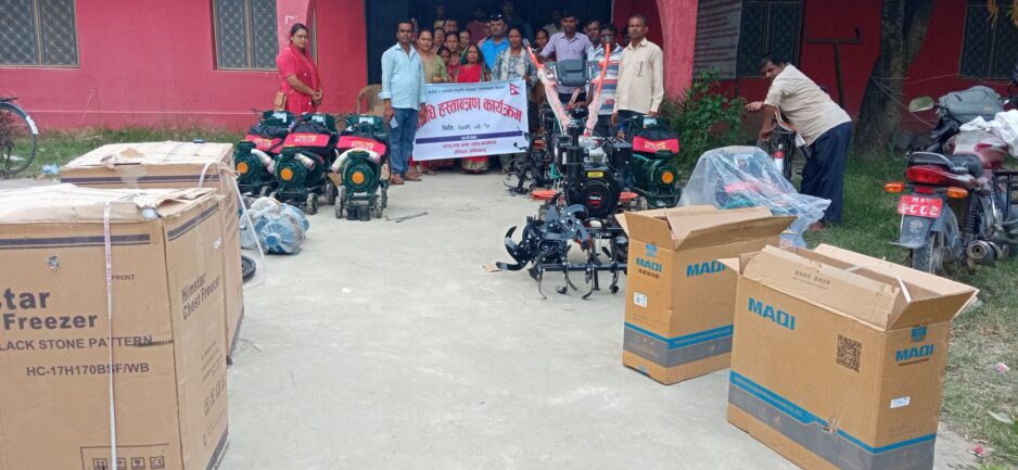 ८० प्रतिशत घरेलु तथा साना उद्योग कार्यालय र २० प्रतिशत लाभग्राहीको लगानीमा उनीहरुलाई सो सामाग्री हस्तान्तरण गरिएको हो । ७ वटा ५ हर्स पावरको पम्पसेट, २ वटा हाते ट्याक्टर पानी तान्ने मोटर एक वटा २ वटा ईलेक्ट्रिक चापाकटर, ४ वटा जुके सिलाइ मेशीन हस्तान्तरण गरिएको हो । सो अवसरमा जिल्ला समन्वय अधिकारी भुमीराम पोख्रेलले साना उद्यमीलाई प्रोत्साहीत गर्न उपलब्ध गराइएको यो प्रबिधिले आय आर्जनमा मद्दत गर्ने बताए ।