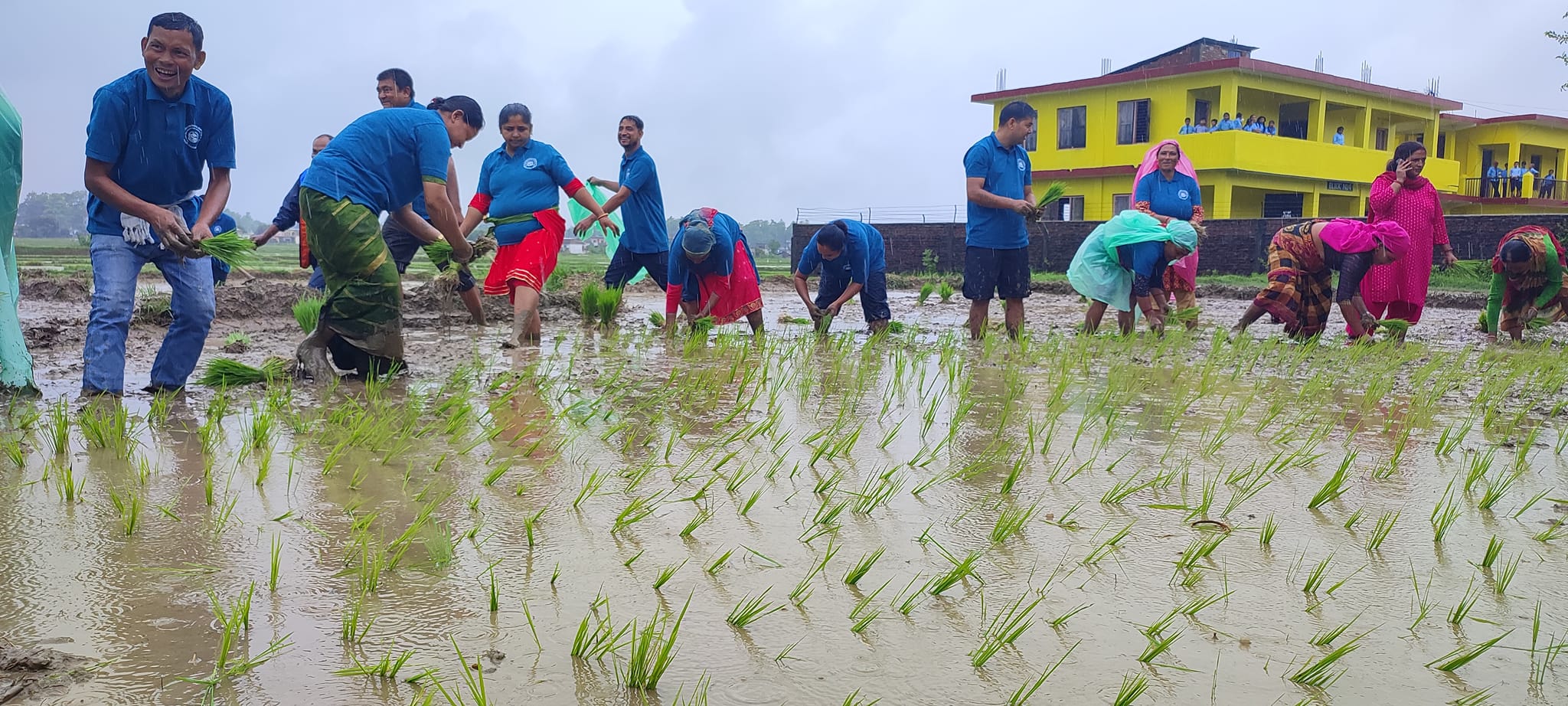 नगरको वडा नं. १ भेलाईमा बुधबार किसान, जनप्रतिनिधि र नगरका कर्मचारीले धान रोपाईँ गरेर दिवस मनाएका हुन् ।