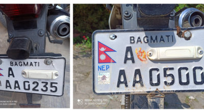 काठमाडौं । यातायात व्यवस्था विभागले साउन १ गतेदेखि सबैलाई इम्बोस्ड नम्बर प्लेट अनिवार्य नगरिएको स्पष्ट