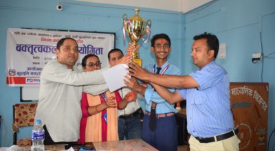 मायादेवी अनलाइन, बुद्धभूमि ।कपिलवस्तुको बुद्धभूमि नगरपालिका स्तरीय बक्तृत्वकला प्रतियोगीताको उपाधि सिद्धार्थ स्मारक माध्यमिक विद्यालय भेलाईका