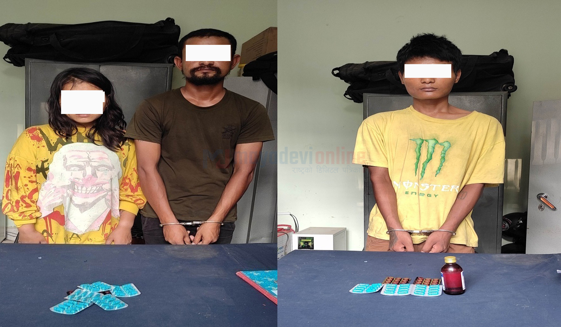 शंका लागि चेकजाँच गर्दा उनीहरुको साथबाट लागु औषध स्पासमो ४१ ट्याब्लेट र नाइट्रोभेट ४६ ट्याब्लेट फेला पारिएको प्रहरी उपरीक्षक दान बहादुर कार्कीले जानकारी दिनुभयो ।