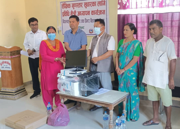 शैक्षिक गुणस्तर सुधारका लागी प्रविधि मैत्री अध्यापन कार्यक्रम अन्तर्गत विद्यालयहरुलाई कम्प्युटर तथा प्रिन्टर वितरण गरिएको हो । नगरपालिकाको सभाहलमा शुक्रबार एक कार्यक्रमको आयोजना गरि एउटा स्रोत केन्द्रसहित ३२ वटा विद्यालयहरुलाई कम्प्युटर र प्रिन्टर वितरण गरेको शिक्षा अधिकृत कृष्ण प्रसाद भट्टराईले जानकारी दिए ।