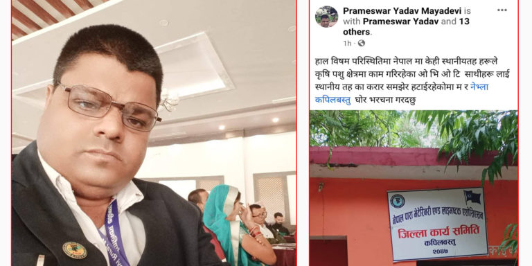 सामाजिक सञ्जालमा लेख्दै उनले करारका कर्मचारी हटाउने निर्णयको विरुद्धमा उत्रिएका हुन् । नेपाल पारा भेटेनरी एण्ड लाइभष्टक एशोसिएसन कपिलवस्तुका अध्यक्ष समेत रहेका यादवले सामाजिक सन्जालमा लेखेका छन्, ‘ हाल विषम परिस्थितिमा नेपालमा केही स्थानीय तहहरूले कृषि, पशु क्षेत्रमा काम गरिरहेका ओभिओटी साथीहरूलाई स्थानीय तहका करार सम्झेर हटाईरहेकोमा म र नेभ्ला कपिलबस्तु घोर भत्र्सना गर्दछु ।’
