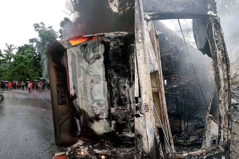 कञ्चनपुरबाट काठमाडौंका लागि छुटेको ना ५ ख ५१०० नम्बरको बस आफै अनियन्त्रित भई सडक छेउमा पल्टिदा बसमा आगो लागेको नवलपुर प्रहरी प्रमुख डिएसपी सन्तोष पाठकले जनाकारी दिए।