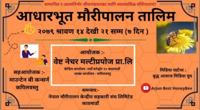 कपिलवस्तु ।‘सम्मानित र आत्मनिर्भर जीवनयापनका लागि ब्यवसायिक मौरीपालन’ भन्ने मूल नारा सहित सात दिने भर्चुअल