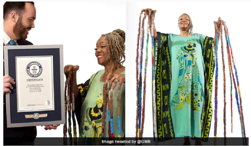 अमेरिकी एक महिलाको विश्वकै सबैभन्दा लामो नङको कीर्तिमान बनाएकी छिन् । डायना आर्मस्ट्रङले यस्तो कीर्तिमान बनाएको गिनिज वर्ल्ड रेकर्ड्सले जनाएको छ । मिनेसोटाकी ६३ वर्षीय डायनाको दुबै हातका नङको कुल लम्बाइ ४२ फिट १० दशमलब ४ इन्च लामो रहेको गिनिज वर्ल्ड रेकर्डले जनाएको छ । डायनाले विगत २५ वर्षदेखि नङ पाल्दै आएकी थिइन् ।