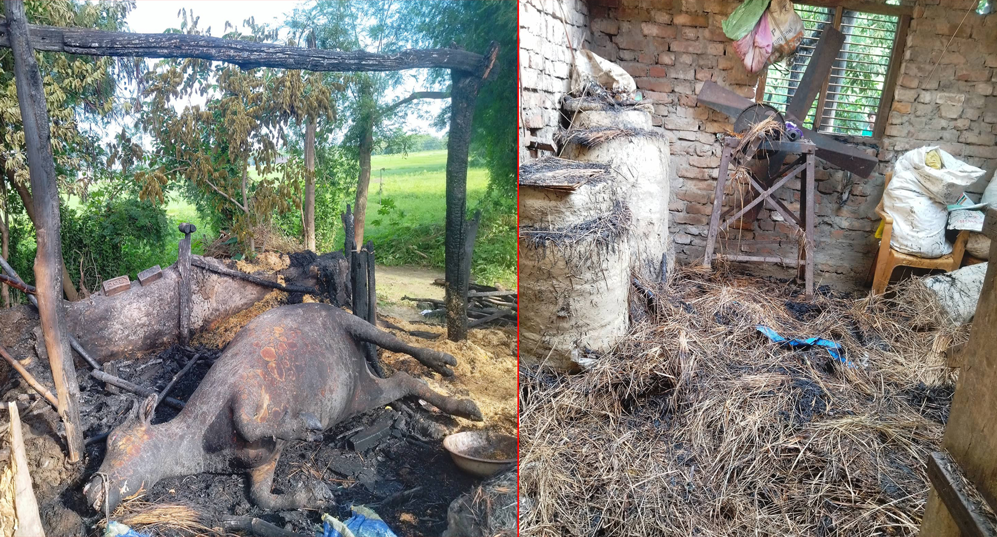 शिव प्रसाद कोरीको गोठमा लामखुट्टे भगाउन जलाएको भुसबाट आगो सल्किदा उक्त घटना भएको प्रहरीले जनाएको छ ।