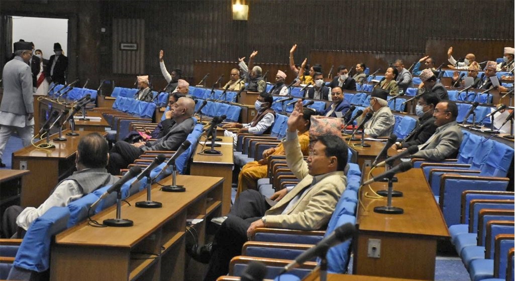 संसदको बिहीबार बसेको बैठकमा गृहमन्त्री बालकृष्ण खाँणले विधेयकमाथि पुनर्विचार गरियोस् भन्ने प्रस्ताव पेश गरेका थिए । संसदले बहुमतले स्वीकृत गरेको छ ।