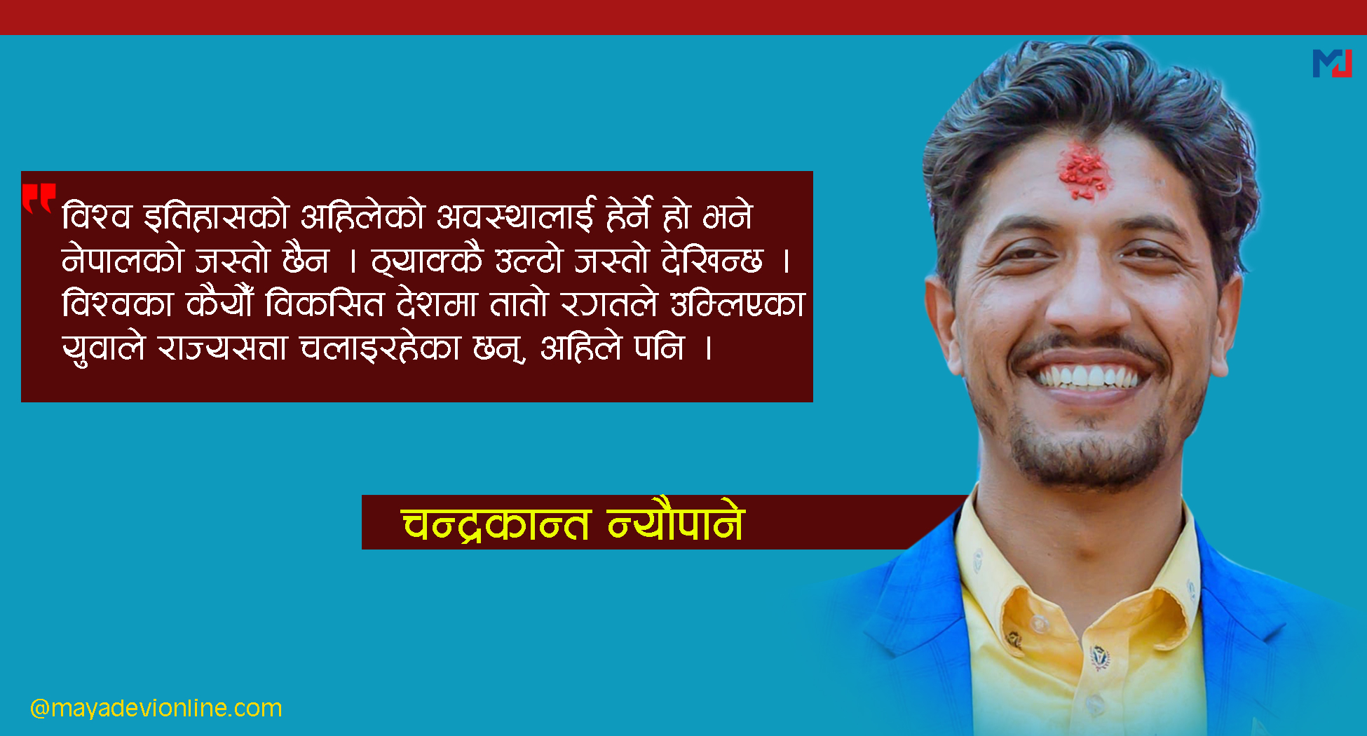 तर विश्व इतिहासको अहिलेको अवस्थालाई हेर्ने हो भने नेपालको जस्तो छैन । ठ्याक्कै उल्टो जस्तो देखिन्छ । विश्वका कैयौँ विकसित देशमा तातोे रगतले उम्लिएका युवाले राज्यसत्ता चलाइरहेका छन्, अहिले पनि ।