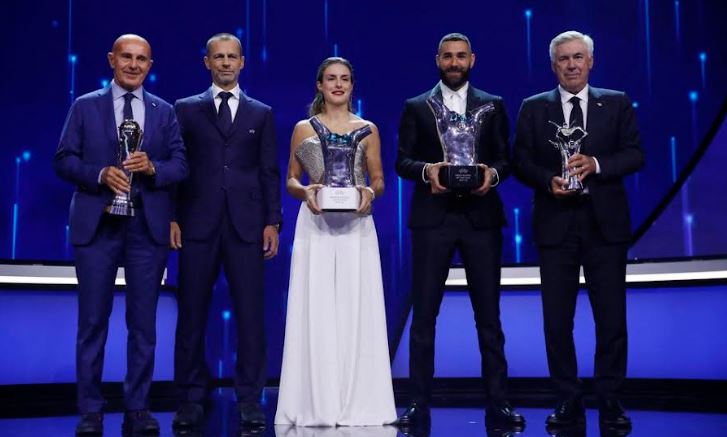 रियल मड्रिडका स्ट्राइकर करिम बेन्जेमा बिहीबार राति ‘यूईएफए प्लेयर अफ द इयर’ घोषित भएका छन् । त्यस्तै रियालका प्रशिक्षक कार्लो एन्सेलोटी उत्कृष्ट प्रशिक्षक घोषित भए ।