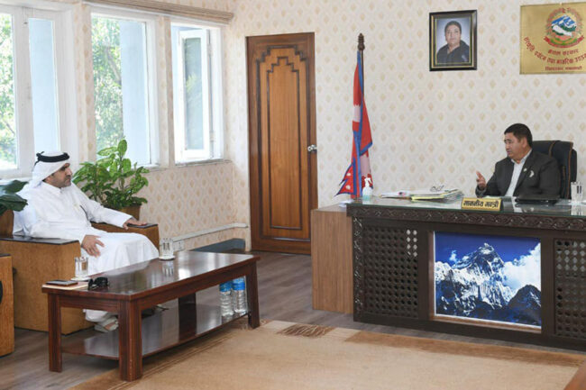 संस्कृति, पर्यटन तथा नागरिक उड्डयन मन्त्री जीवनराम श्रेष्ठ र नेपालका लागि कतारका राजदूत युसुफ बिन मोहम्मद अल हैलबीच भेटवार्ता भएको छ ।