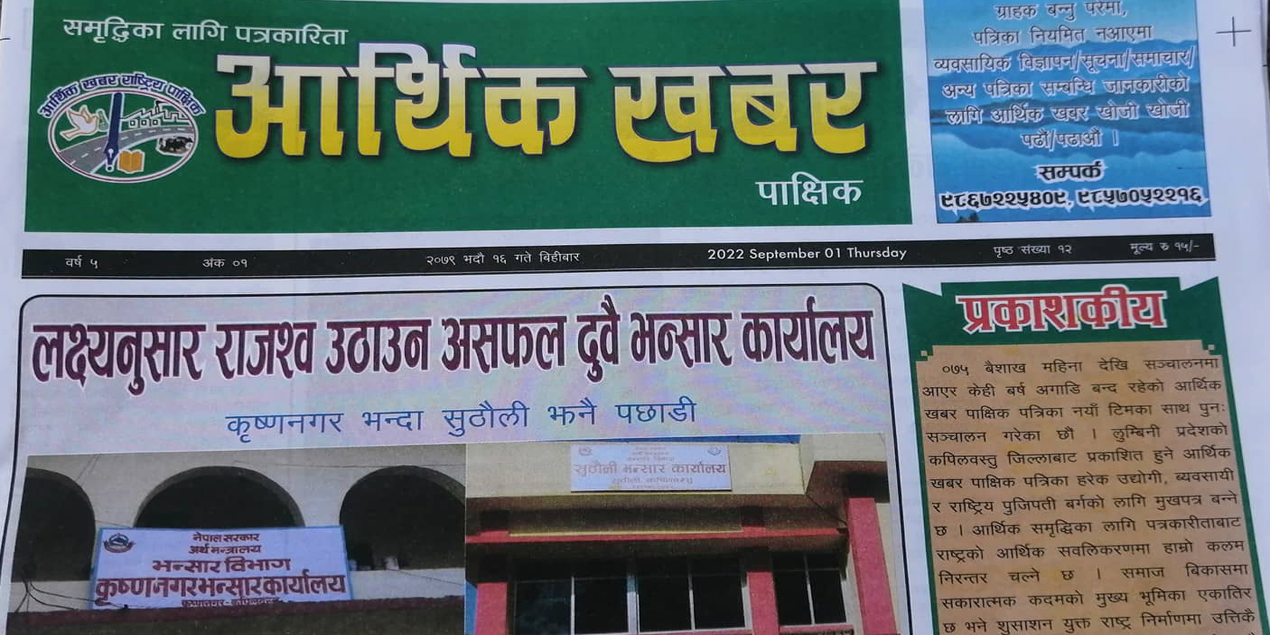 कोरोना महामारीका कारण बन्द रहेको आर्थिक खबर पत्रिकाले आफ्नो प्रकाशन पुनः सुरु गरेको छ ।