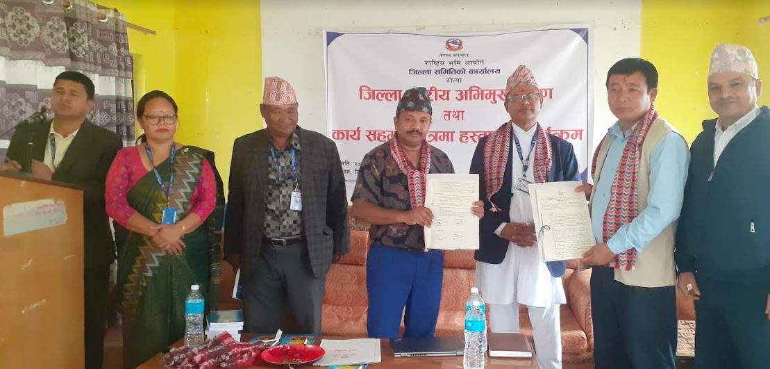 भूमिहीन दलित, भूमिहीन सुकुम्बासी र अव्यवस्थित बसोबासीहरुको समस्या समाधान गर्न राष्ट्रिय भूमि आयोगले रोल्पाका पालिकासँग सम्झौता गरेको छ । आयोगले जिल्लाका ६ वटा पालिकासँग सम्झौता गरेको हो ।