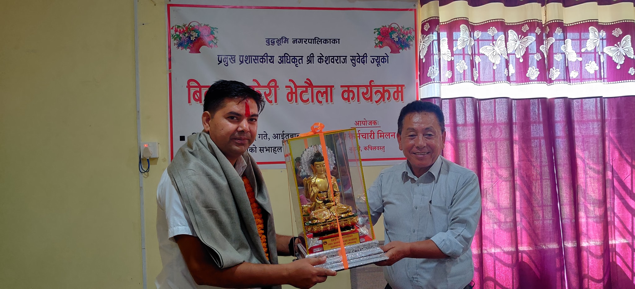 कपिलवस्तुको बुद्धभूमि नगरपालिकाका प्रमुख प्रशासकीय अधिकृत केशव राज सुवेदीको एक कार्यक्रमका बीच बिदाई गरिएको छ ।