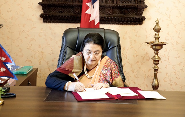 राष्ट्रपति विद्यादेवी भण्डारीले विभिन्न विषयका छ वटा विधेयक प्रमाणीकरण गर्नु भएको छ ।