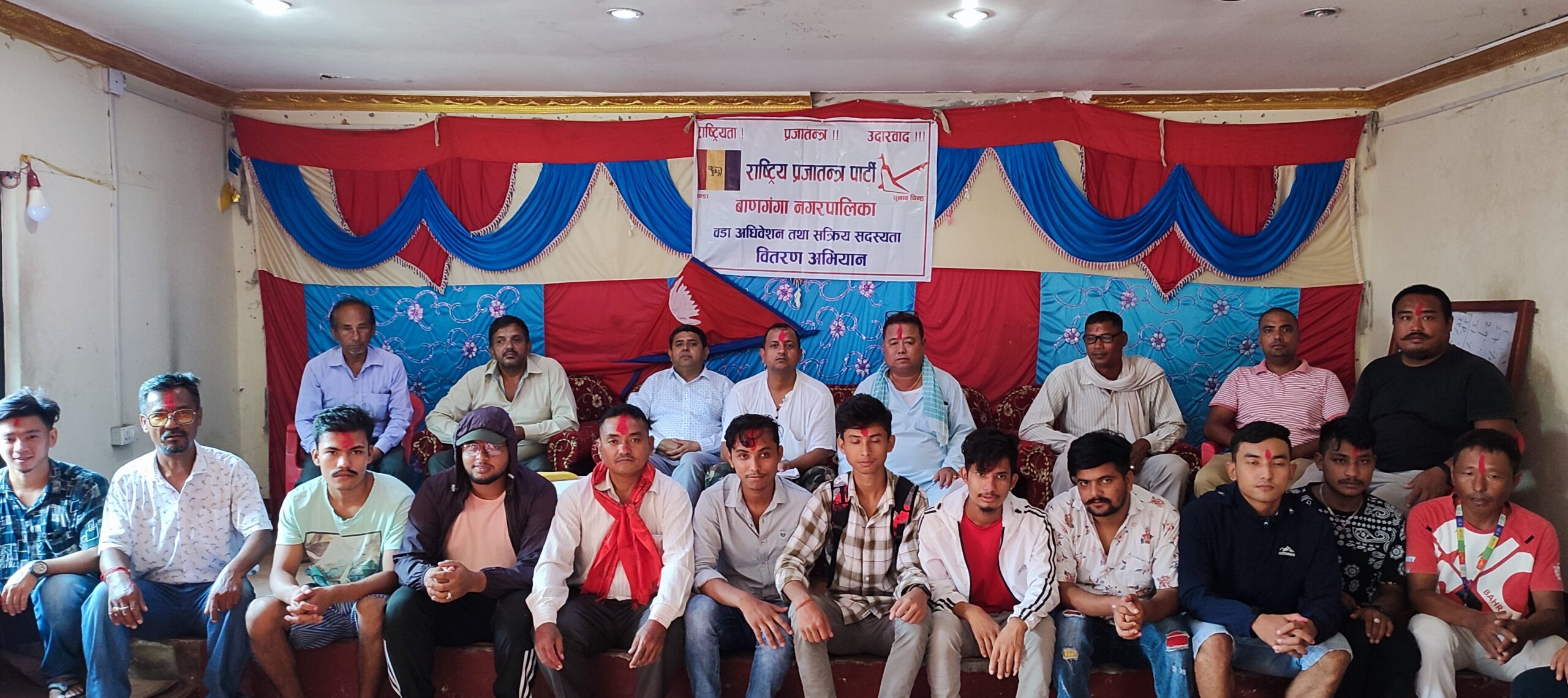 राष्ट्रिय प्रजातन्त्र पार्टी (राप्रपा) बाणगंगा-१ को वडा अधिबेशन तथा सक्रिय सदस्यता बितरण कार्यक्रम सम्पन्न भएको छ । बाणगंगा-१ जितपुरमा अवस्थित लुम्बिनी पार्टी प्यालेसको सभा हलमा कार्यक्रमको आयोजना गरिएको थियो ।