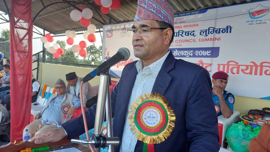 नवौं राष्ट्रिय खेलकुद प्रतियोगिताका लागि लुम्बिनीमा सुरु भएको छनौट प्रतियोगिताको उद्घाटन गर्दै उनले प्रदेश सरकार खेलाडीको मनोबल बढाउन तयार रहेको बताए । बजेटको चिन्ता नलिनुस्, खेलमा अब्बल साबित प्रदेश बनाउन सम्बन्धित निकाय लागिपर्नुस्, उनले भने, ‘सरकारको चाहना खेलको माध्यमबाट पनि यो प्रदेशको नाम उचो होस् भन्ने छ ।’ साथै उनले २ वर्ष अघिसम्म नरहेको खेलकुद मन्त्रालय तथा व्यवस्थित खेलकुद परिषद्ले खेलाडी उत्पादन र प्रोत्साहनमा जोड दिनुपर्ने जनाए ।