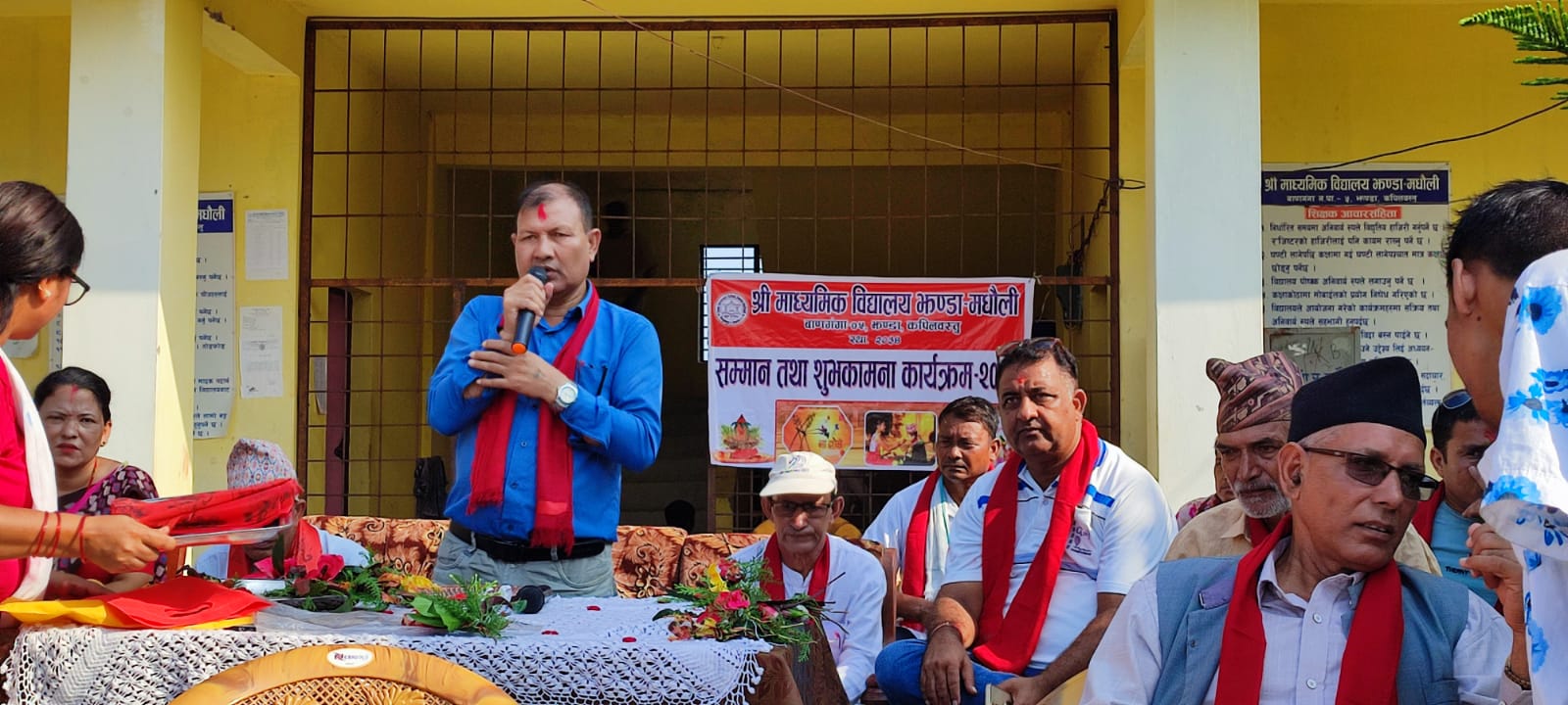 बाणगंगा ५ स्थित झण्डा माबिले आयोजना गरेको सहयोगिदाता सम्मान तथा शुभकामना कार्यक्रमलाई सम्बोधन गर्दै नगर प्रमुख अर्यालले शैक्षिक स्तर बढाउन सञ्चालक समिति र प्रधानाध्यापक सक्रिय भएर बिद्यालयको स्तरलाई पहिलेको गतिमा पुर्याउन सुझाब दिनुभयो । भौतिक निर्माणमा सुधार हुँदै गईरहेको अवस्थामा बिद्यार्थी संख्या थप बढाउदै लैजान आवश्यक रहेको उहाँको भनाई छ ।