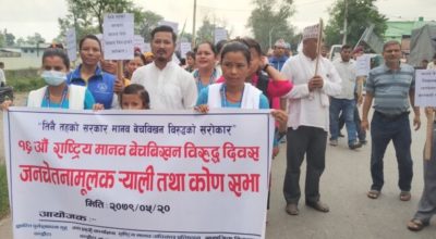 कपिलवस्तु । मानव बेचबिखनविरुद्धको १६औँ अन्तर्राष्ट्रिय दिवसको अवसरमा आयोजित कार्यक्रममा मानव बेचबिखन कम गर्न शिक्षा