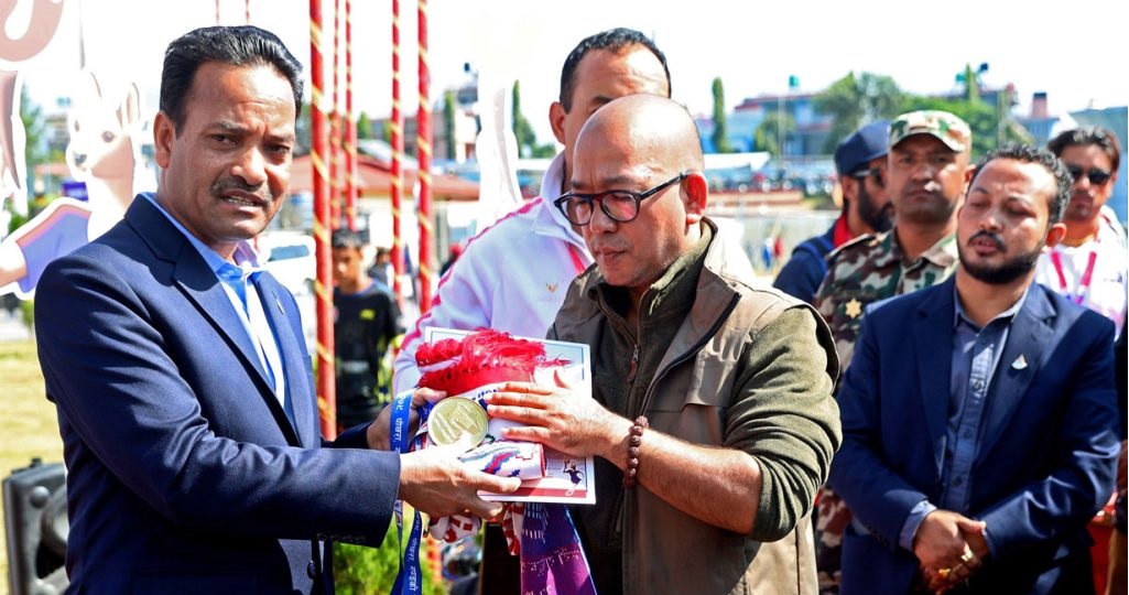 विजेता बनेका खेलाडीलाई मन्त्री गहतराजले पोखरा रंगशालामा नै पदक हस्तान्तरण गरेका छन् । तर, विजयी खेलाडीलाई पदक गलामा नभई हातमा दिइएको छ ।