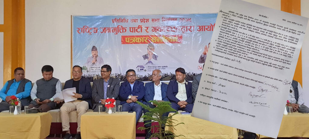 सत्तारुढ पाँच दलीय गठबन्धन र राष्ट्रिय जनमुक्ति पार्टीले रुपन्देहीका पाँचवटा प्रतिनिधिसभा र १० वटा प्रदेशसभा निर्वाचनमा एक भएर जाने भएका छन् ।