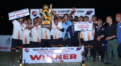 कैलाली ।धनगढीमा भएको ‘सुदूरपश्चिम राजधानी कप राष्ट्रिय फुटबल प्रतियोगिता’को उपाधि लुम्बिनी प्रदेशले जितेको छ ।