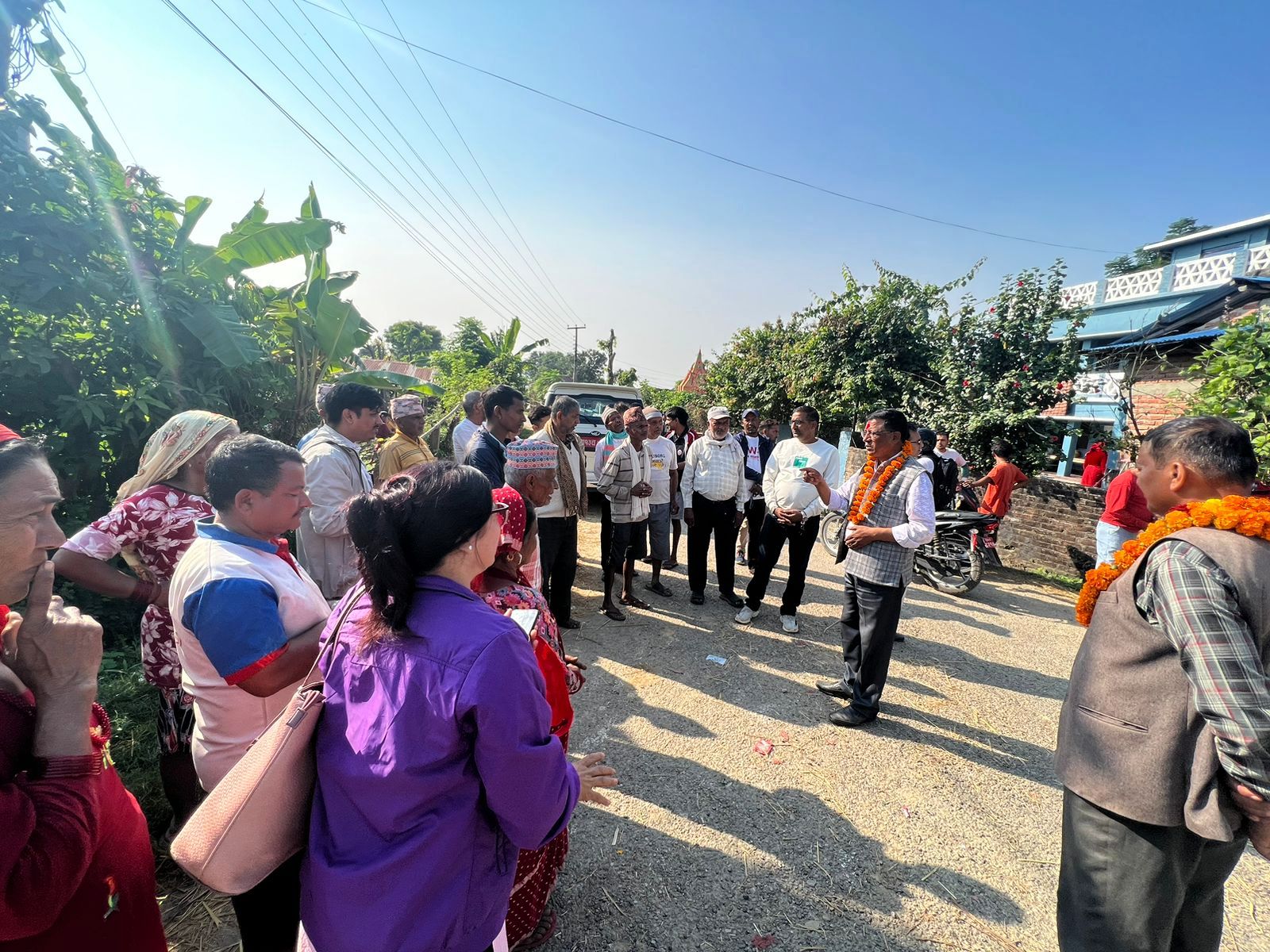 त्यस्तै संविधान सभा सदस्य समेत रहनुभएका प्रतिनिधि सभा सदस्य पदका उम्मेद्वार अधिकारीले निर्वाचनमा मात्र नभई सदैव जनताको साथमा रहने बताउनुभयो । उहाँले यस क्षेत्रको विकासका लागि एमालेका उम्मेद्वारलाई जिताउन आग्रह समेत गर्नुभएको छ ।