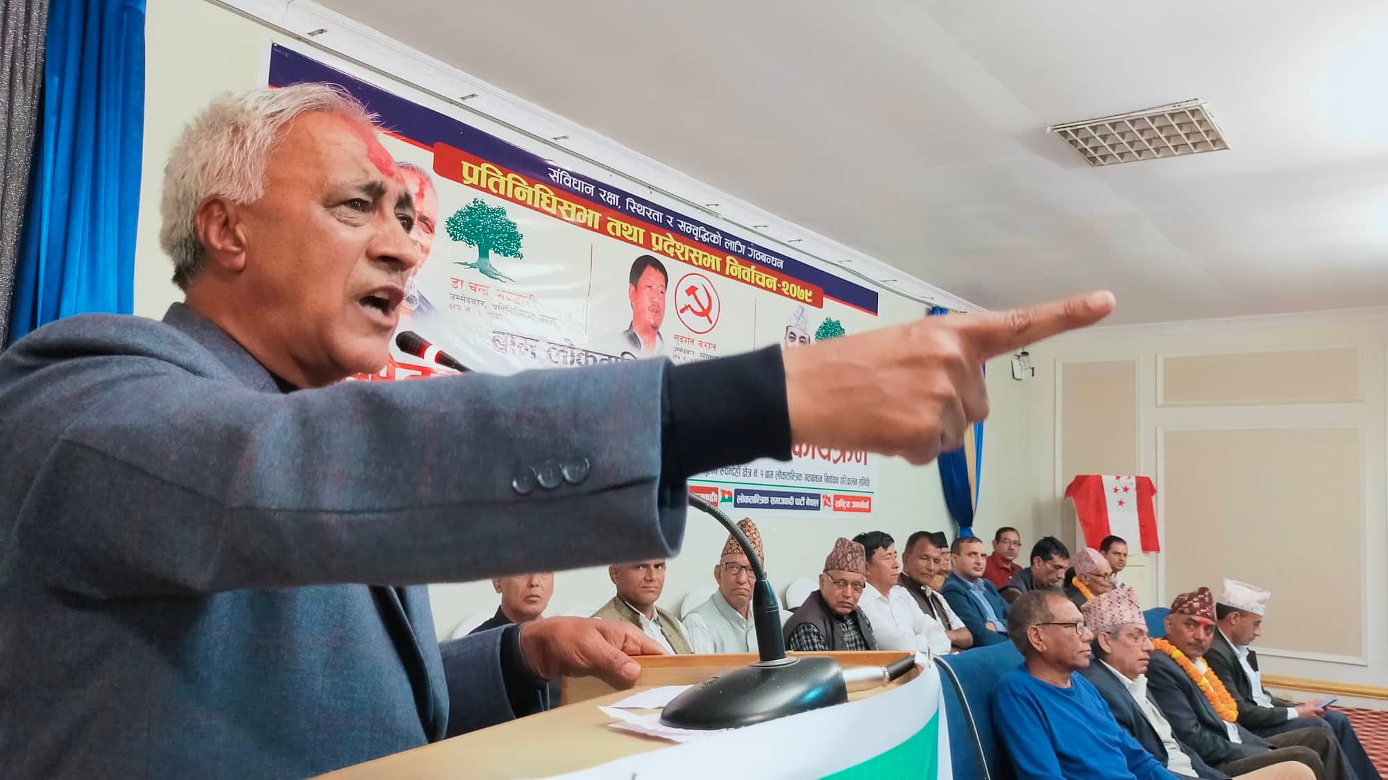 उनले जनताले दिएको झण्डै दुई तिहाइको मत सदुपयोग गर्न नसक्ने, पार्टी फुटाउने,संविधान लत्याउने र संसद गिराउने नेता र एमाले पार्टीलाई भोट हाल्न नहुने उनले टिप्पणी गरे ।