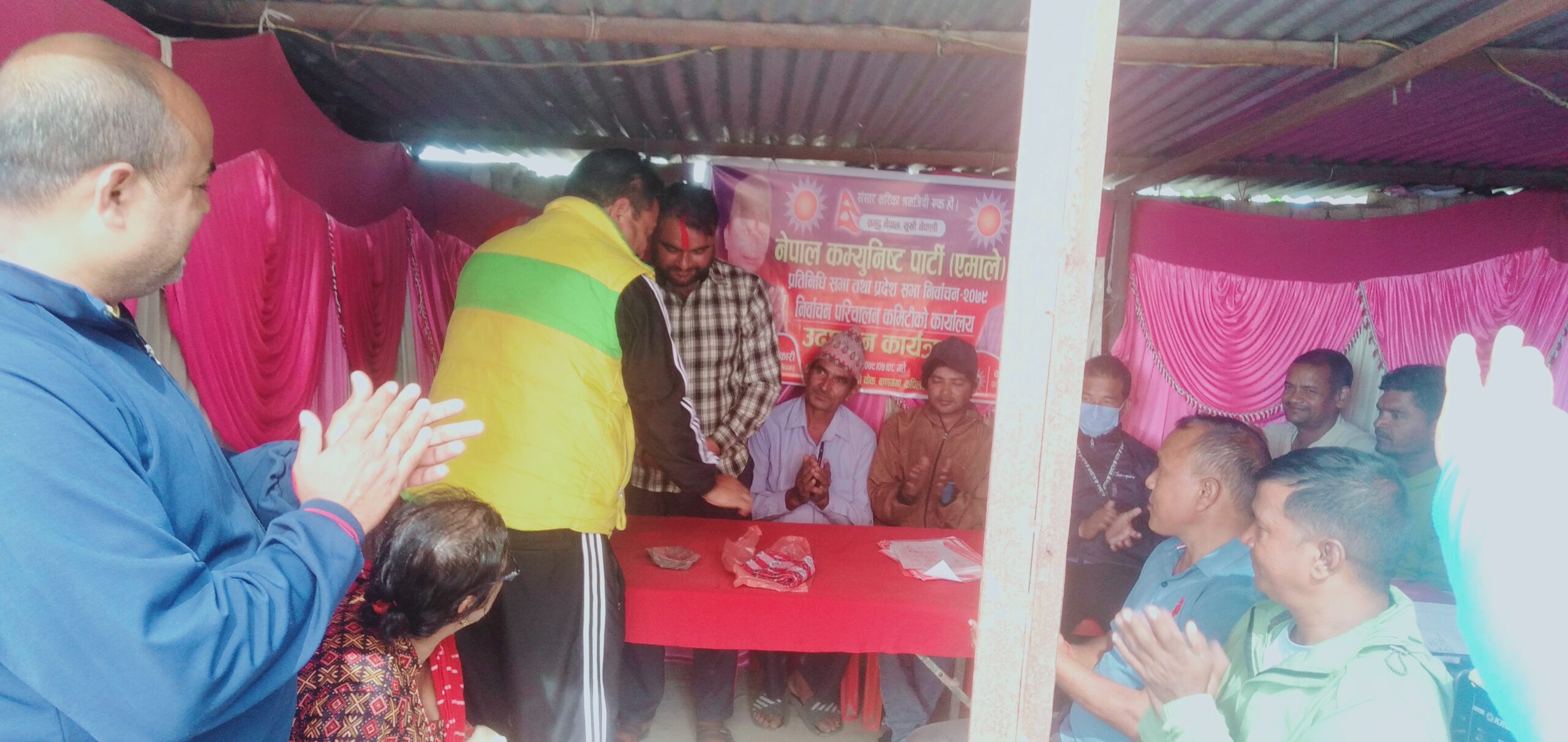 नेकपा माओवादी केन्द्र बाणगंगा नगर कमिटी सदस्य लक्ष्मण भुसाल नेकपा एमालेमा प्रवेश गरेका छन् । नेकपा एमाले निर्वाचन परिचालन कमिटी बाणगंगा ६ बैदौलीमा आज भएको एक कार्यक्रमका बिच नेकपा एमाले जिल्ला कमिटी सचिवालय सदस्य तथा निर्वाचन परिचालन कमिटी वडा नं ६ का संयोजक तेजेन्द्र बहादुर पाण्डेले टिका खादा लगाई पार्टीमा प्रवेश गराएका हुन् ।