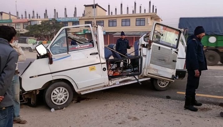 आज बिहान महोत्तरीको पीपरा गाउँपालिका गम्हरियाका जन्ती बोकेर इँटहरीबाट फर्किँदै गरेको बा १ ज ८२९६ नम्बरको जीपलाई माछा बोकेको ज १ च १४९६ नम्बरको जीपले ठक्कर दिएको हो । दुर्घटनामा ९ जना घाइते भएका छन् । उनीहरुको प्रादेशिक अस्पताल धनुषामा उपचार भइरहेको छ । घाइतेमध्ये एक जना महिलाको अवस्था गम्भीर रहेको अस्पतालले जनाएको छ ।