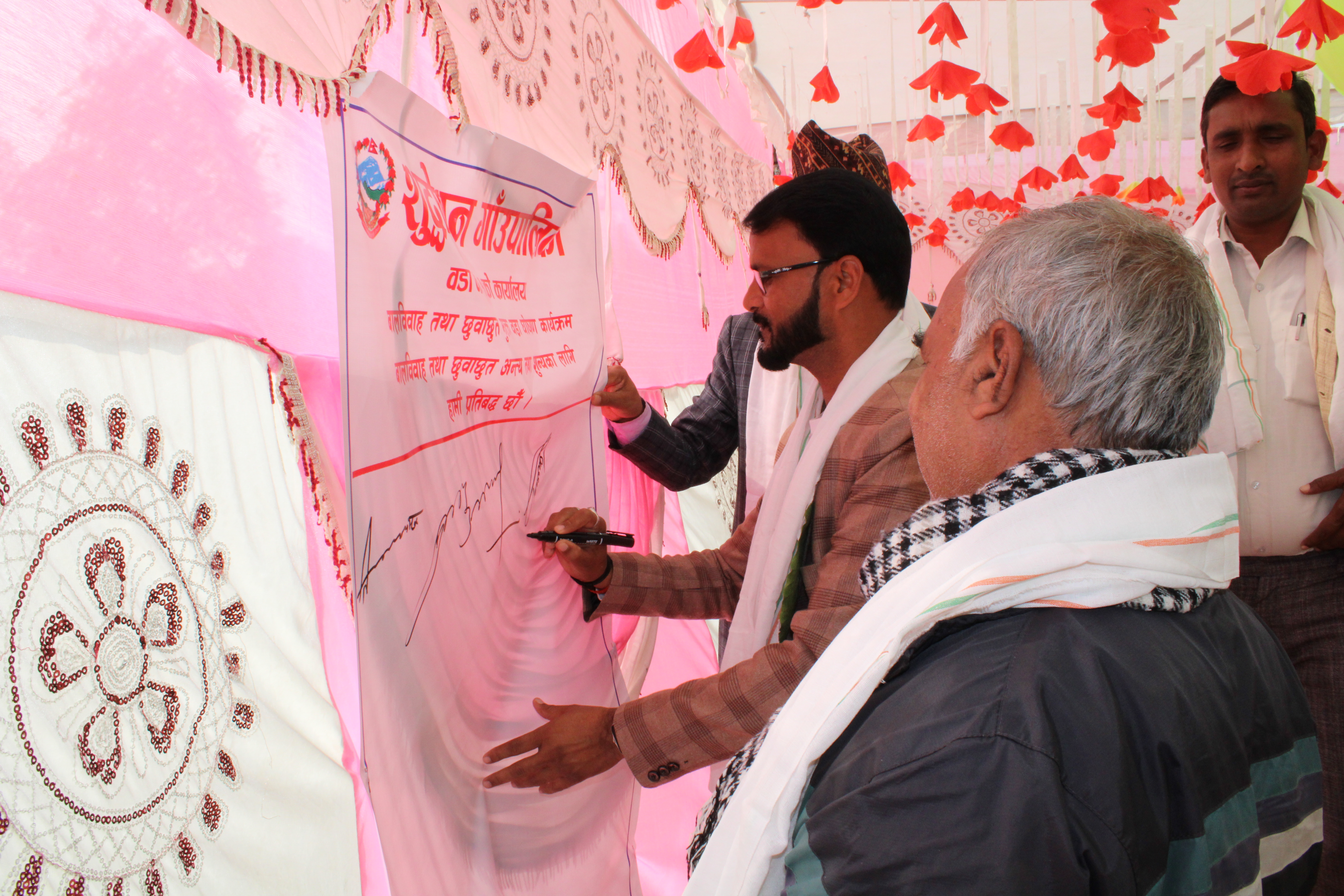 कार्यक्रममा निवर्तमान गाउँपालिका अध्यक्ष निशार अहमद खाँ, वडा नम्बर २ का वडा अध्यक्ष मनोज यादव, मायादेवी गाउँपालिका ३ का वडा अध्यक्ष शैलेन्द्र कुमार यादव, सिद्धार्थ सामाजिक विकास केन्द्रका अध्यक्ष सूर्यकुमारी शाही, पूर्ण केशर मा.वि.का प्रद्यानाध्यापक लीला खनाल, मदरसाका मोल्वी मोजीबुल रहमान लगाएतले वडामा बालविवाह र छुवाछुत अन्त्यको प्रतिवद्धता व्यक्त गर्दै यसको निरन्तरताका लागि लागि शिक्षा र चेतना अपरिहार्य रहेको बताएका थिए ।