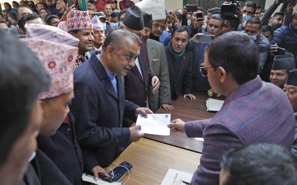 नेपाली कांग्रेसको संसदीय दलको नेतामा महामन्त्री गगन थापाले उम्मेदवारी दर्ता गरेका छन् ।