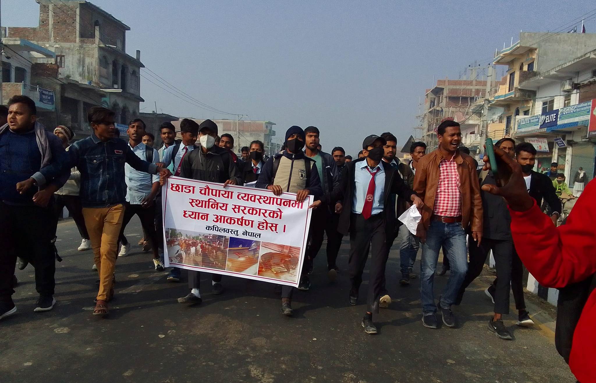 कपिलवस्तु बहुमुखी क्याम्पसमा अध्ययन गर्ने विद्यार्थीले छाडा चौपाया नियन्त्रणमा कसैले ध्यान नदिएको भन्दै जिल्ला प्रशासन कार्यालय अगाडी विरोध स्वरुप व्यानर र प्ले कार्ड बोकेर नाराबाजी गरेका छन् ।