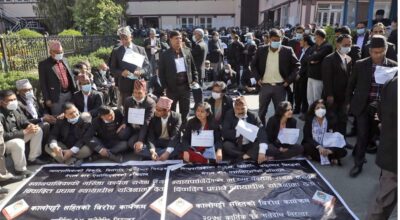 काठमाडौं । सर्वोच्च अदालत बार एसोसिएसनले प्रधानन्यायाधीश चोलेन्द्र शमशेर जबरालाई रोक्न सर्वोच्च अदालतको मुख्य गेटमा