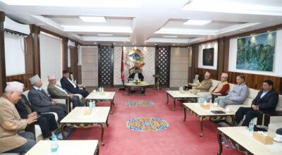 काठमाडौं । सत्ता गठबन्धनका शीर्ष नेताहरुको बैठक केही बेरका लागि स्थगित भएको छ । सरकारका
