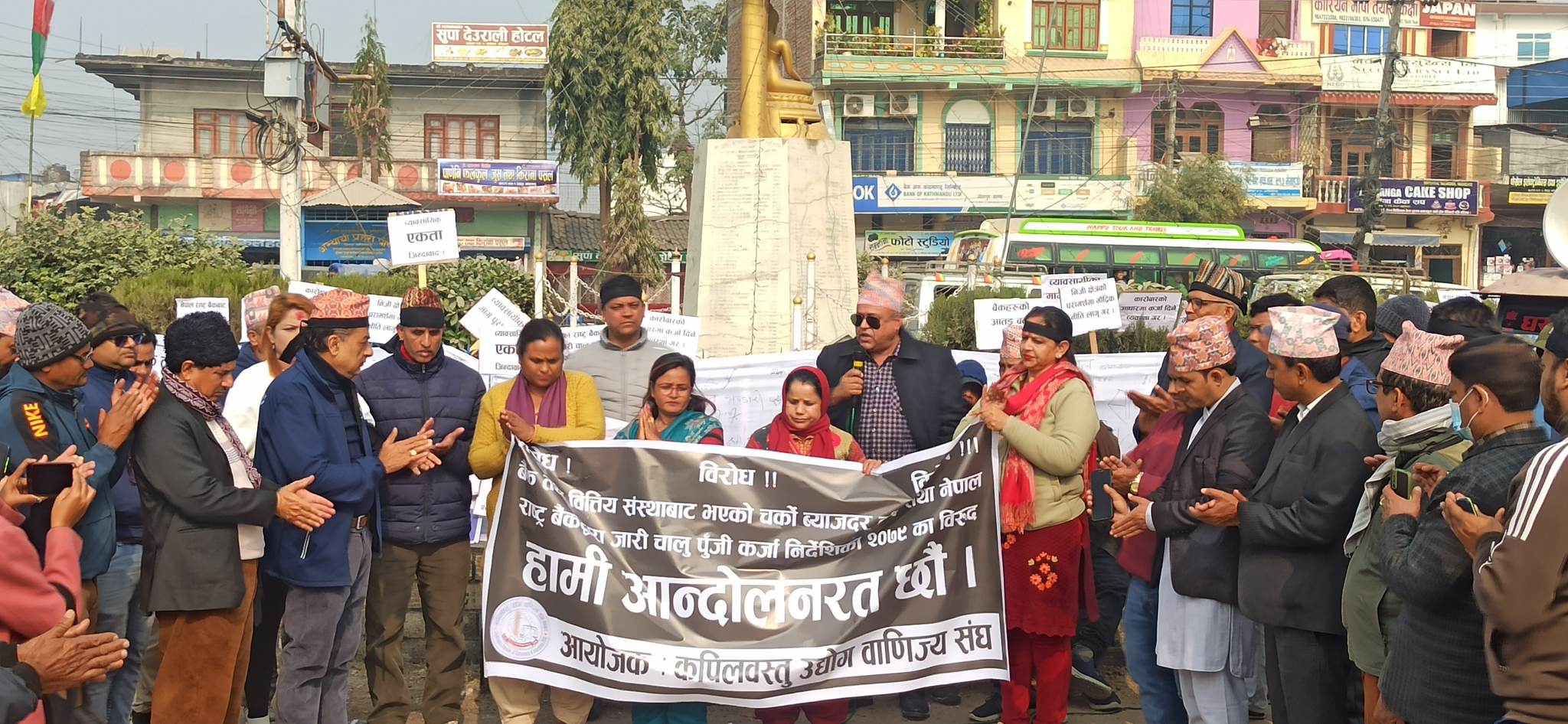 कपिलवस्तु उद्योग वाणिज्य संघको आयोजनामा चार नम्बरमा आइतबार भएको विरोध प्रदर्शन र हस्ताक्षर संकलन कार्यक्रममा सहभागी व्यवसायीका नेता र पीडित ब्यापारीहरुले तुरुन्त यस विषयमा सरकारको ध्यानाकर्षण हुनुपर्ने बताए ।