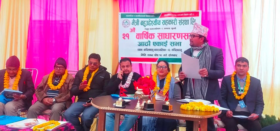 कपिलवस्तुको तौलिहवामा मैत्री बहुउद्देश्यीय सहकारी संस्था लिमिटेडको आठौ शाखाका रुपमा रहेको कपिलवस्तुमा २१ औ साधारण सभा संपन्न गरिएको छ ।